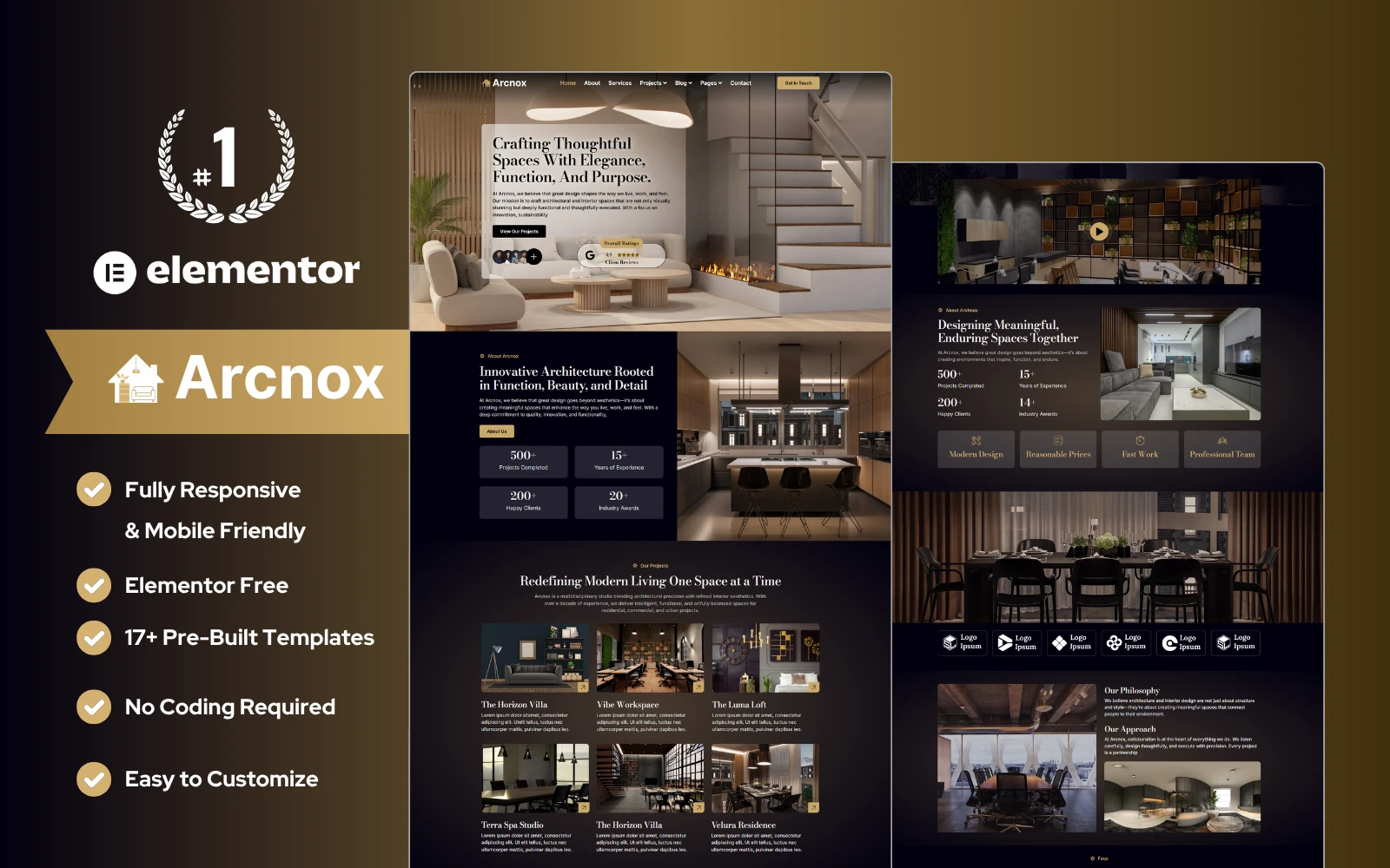 Key Features of Arcnox – Interior Design & Architecture Elementor Template Kit