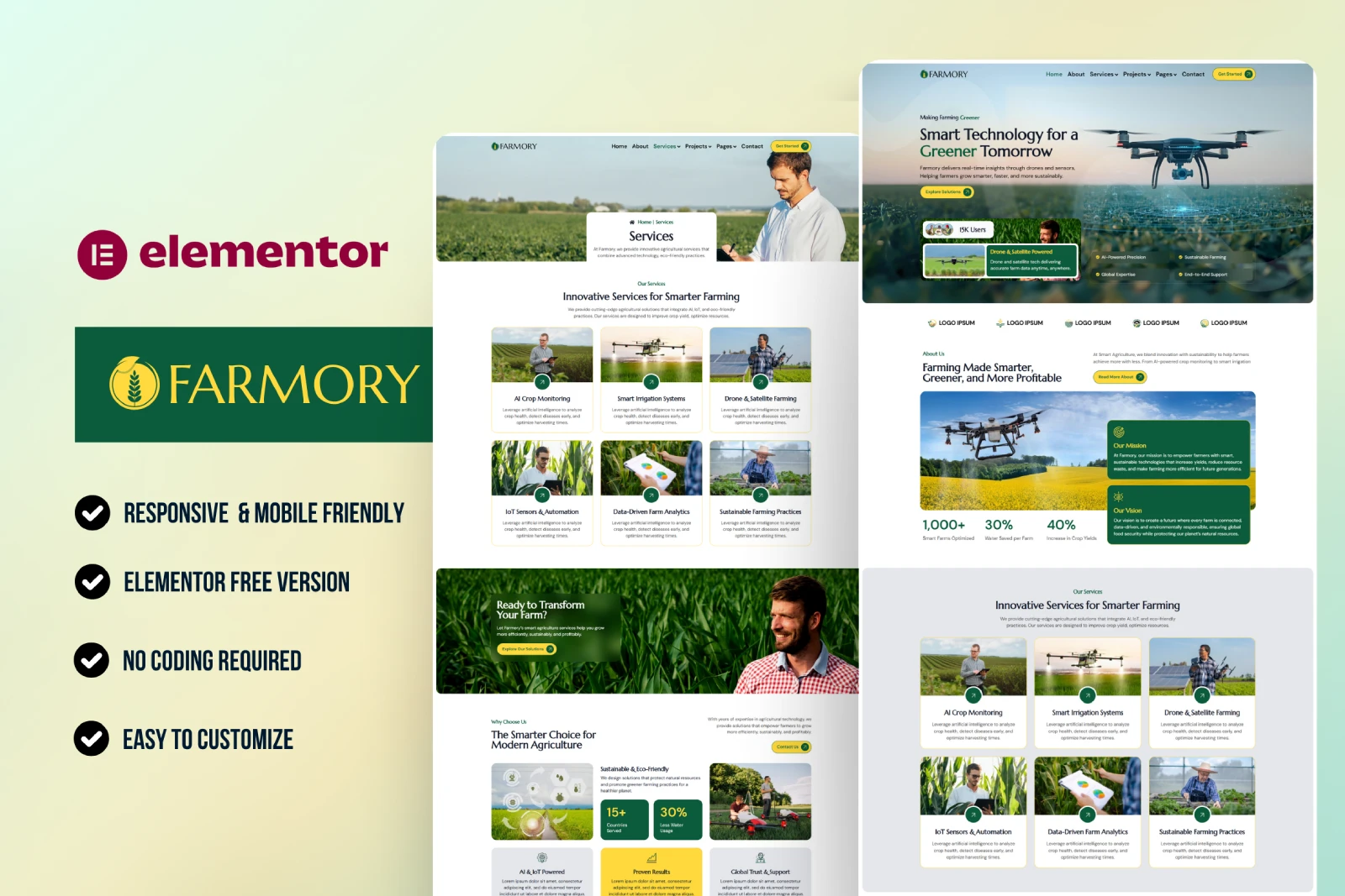 The Farmory – Smart Agriculture Elementor Template Kit solves this by providing: