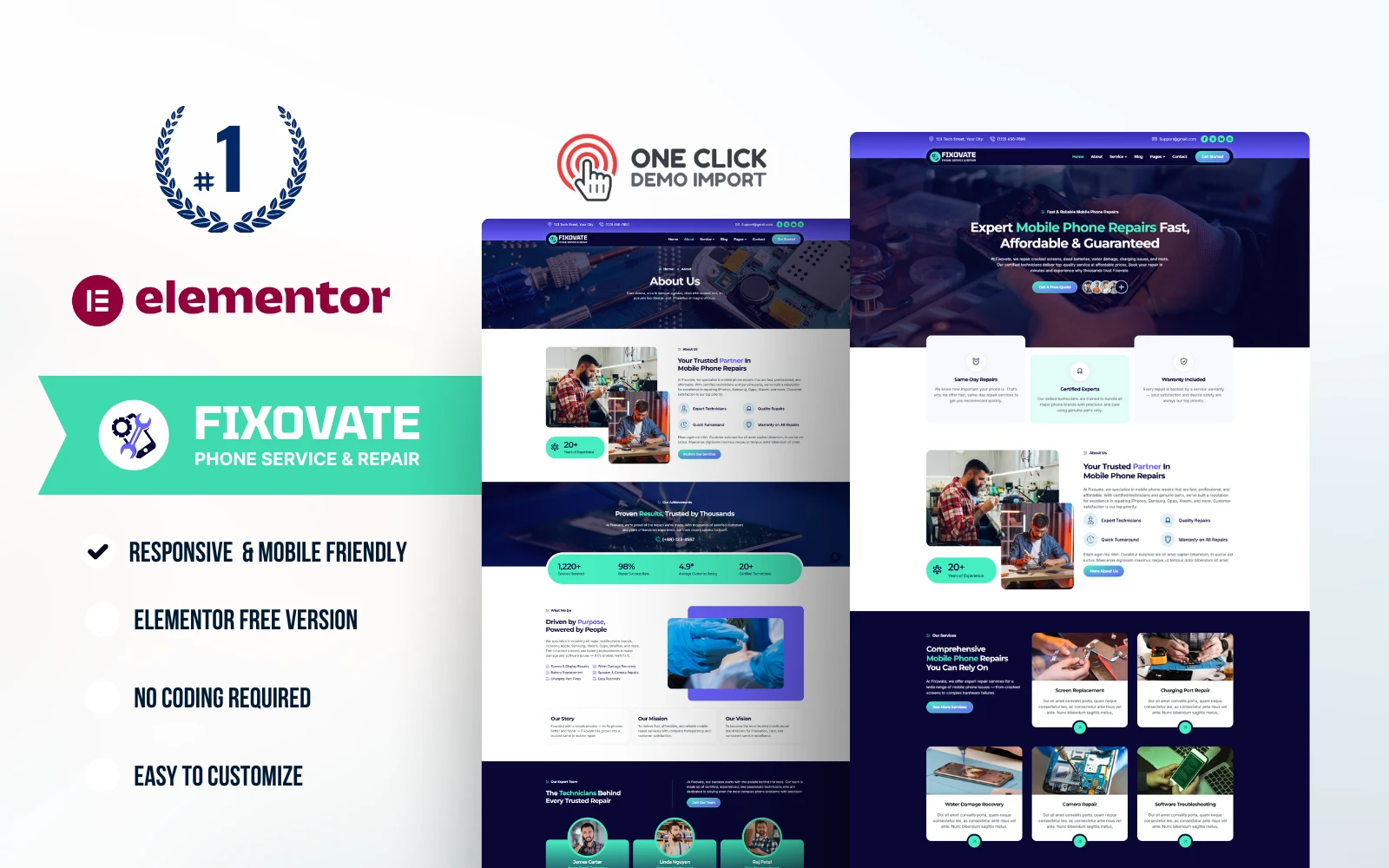 The best part? You don’t need to be a developer. Fixovate – The Best Mobile Repair Services WordPress Elementor Template Kit allows you to: