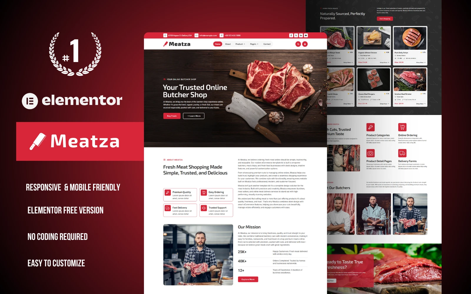 If you’re looking to take your butcher shop, meat supplier business, or fresh food store online, the Meatza – The Best Meat Shop Elementor Template Kit is the perfect solution. Designed with clean layouts, bold visuals, and user-friendly features, this kit makes it simple to showcase your products, manage online orders, and build customer trust.