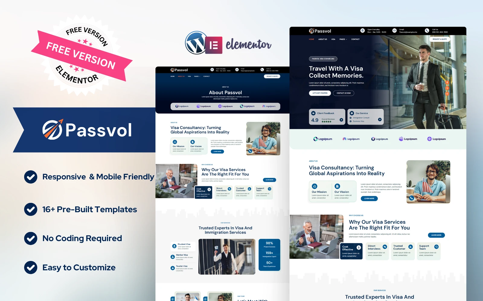 Starting your own visa and immigration consultancy online has never been easier thanks to Passvol —The Best Visa & Immigration Consulting WordPress Elementor Kit. Whether you are an immigration consultant, visa service provider, or legal advisor, this Elementor template kit allows you to create a professional website that builds trust and attracts potential clients.