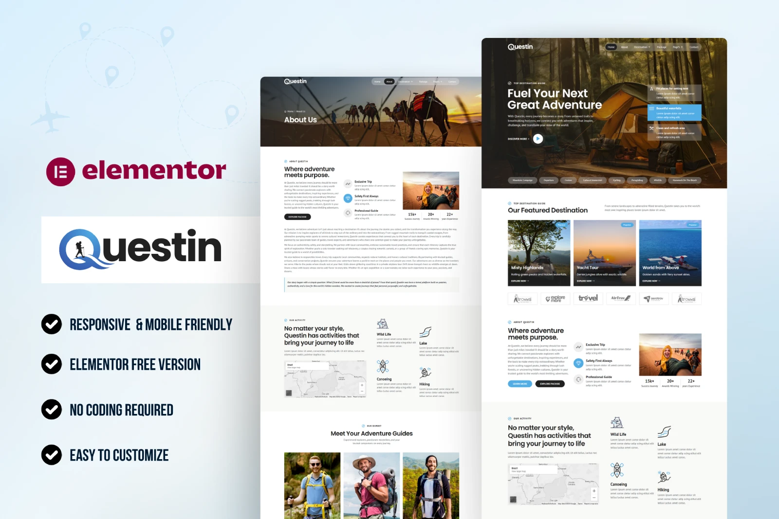 Key Features of Questin – The Best Travel & Tour Agency Elementor Template Kit