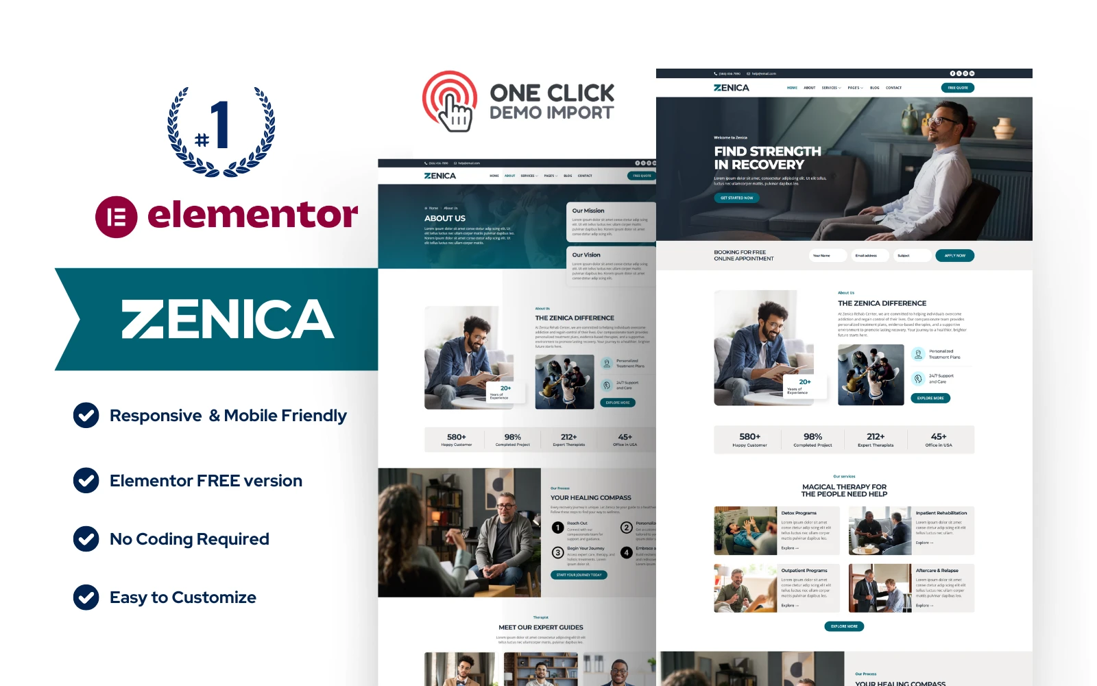 Zenica – The Best Addiction Recovery & Healthcare Rehabilitation Center WordPress Elementor Template Kit